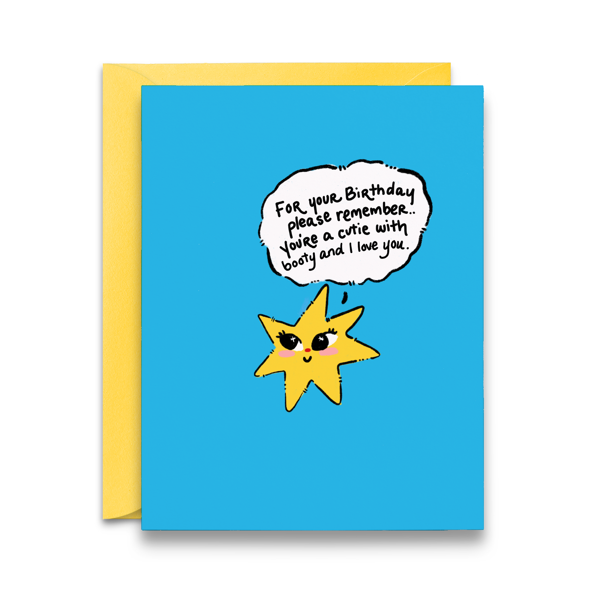 A birthday reminder they absolutely need: they’re a cutie with booty and you love them. Blank inside for extra flirting (or emotional support).